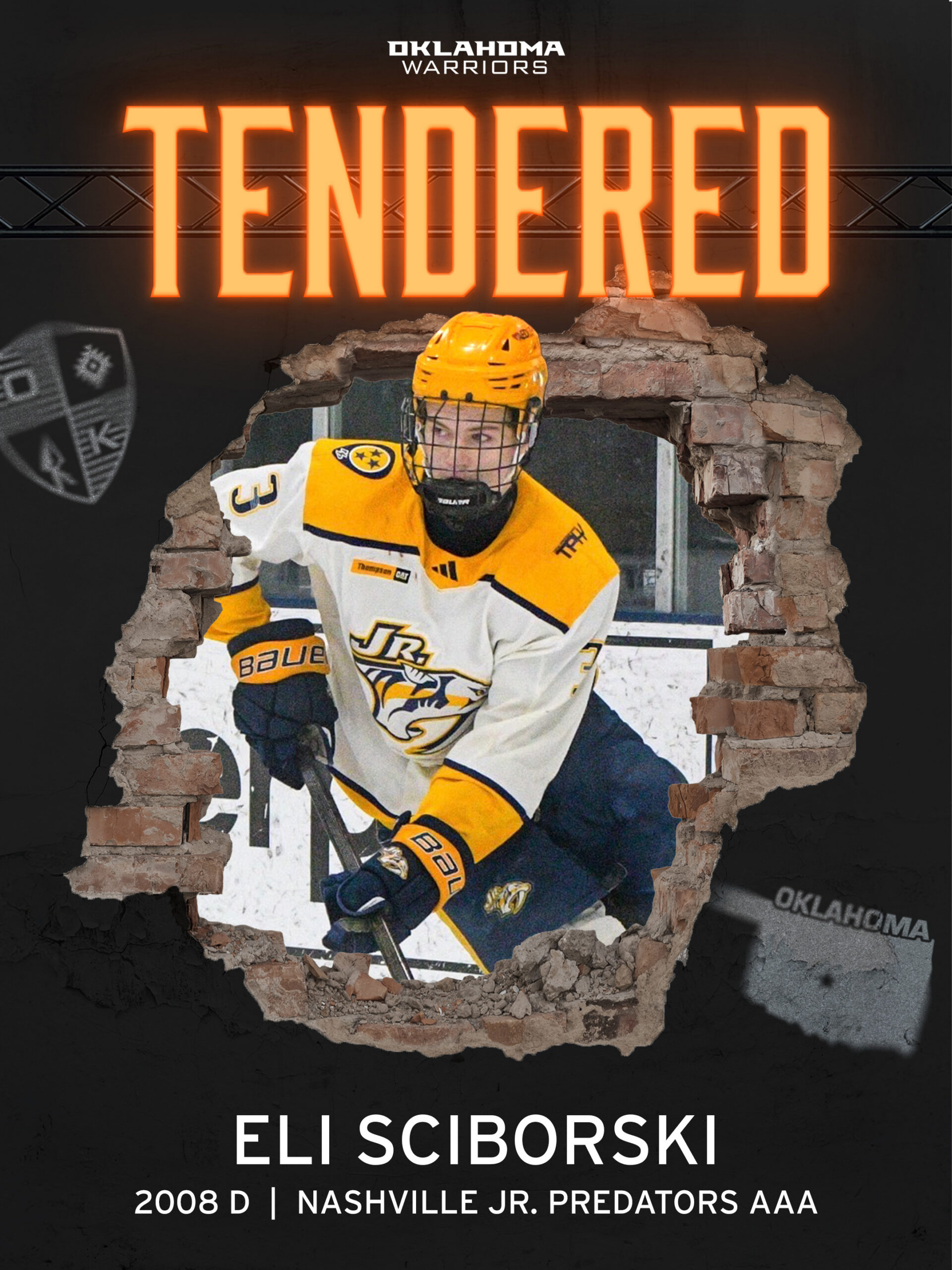 OKLAHOMA CITY, OK, APRIL 18TH, 2026 — The Oklahoma Warriors have announced the tender signing of ’08 Forward, Eli Sciborski, of Hortonville, Wisconsin. Weighing in at 6’1, 170 pounds, Sciborski will bring quickness and a strong ability to solidify things on the backend for the Warriors. Eli currently plays for the Nashville Jr. Predators 18UAAA team in which he put up 31 points in 50 games. Additionally, Eli won’t be a stranger to the North American League, as he played in 2 games with the Springfield Jr. Blues in the 25-26 season.